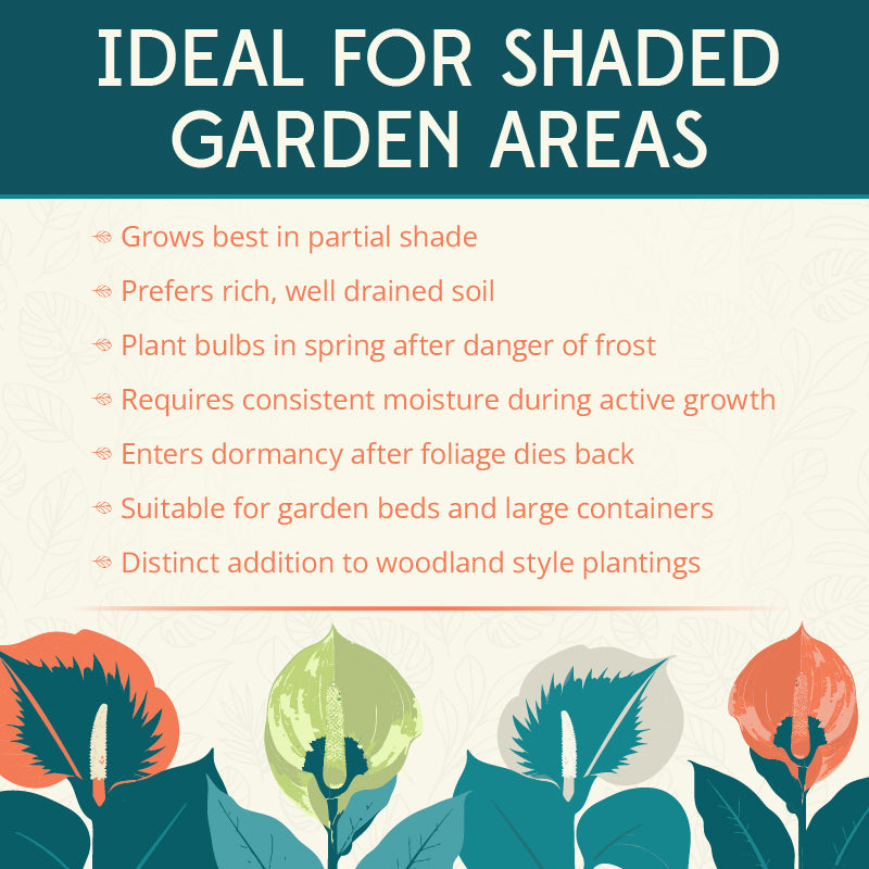 Bring an exotic touch to your garden with the Napalanse Voodoo Lily! Originating in the Himalayan region of Nepal and India, this dramatic bloom produces green and white spathes from late Spring to early Summer along with bright red berries in the Fall. In hardiness zones 7-9, Voodoo Lilies can be planted directly in the ground in a partial shade location. At maturity, this variety can grow up to 4' tall! In all other climates, plant the bulb in a pot and enjoy the bloom outdoors in Spring and Summer and bring it indoors as a houseplant during the Winter months. Versatility, dramatic and rare make the Napalanse Voodoo Lily a great addition to any outdoor or indoor space!